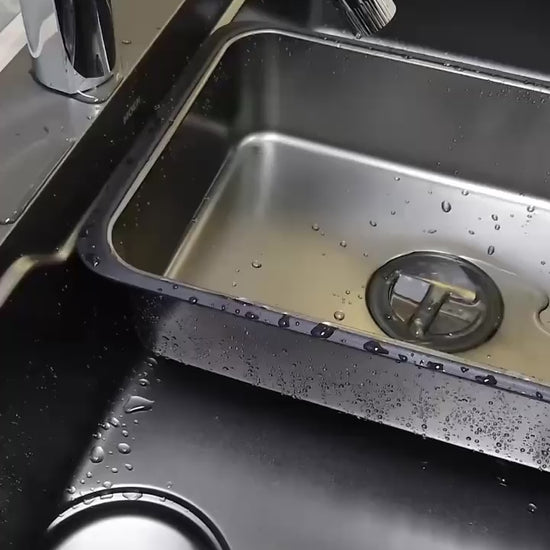 - Stänkskydd – minskar spill och håller diskbänken ren
