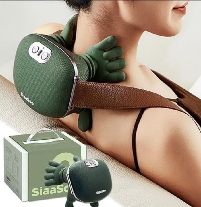 Den smarta designen med flexibla “armar” gör att massagern sitter stadigt runt nacke, axlar eller rygg – helt handsfree.