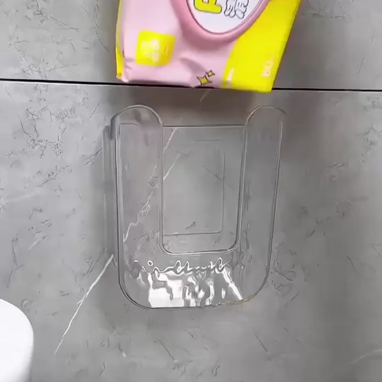 Håll ordning och reda med denna stilrena, transparenta väggmonterade förvaringslåda! Den minimalistiska designen i klar akrylplast passar perfekt i både kök, badrum och tvättstuga. Den fästs enkelt utan borrning – bara klistra fast med den starka, medföljande självhäftande ytan.